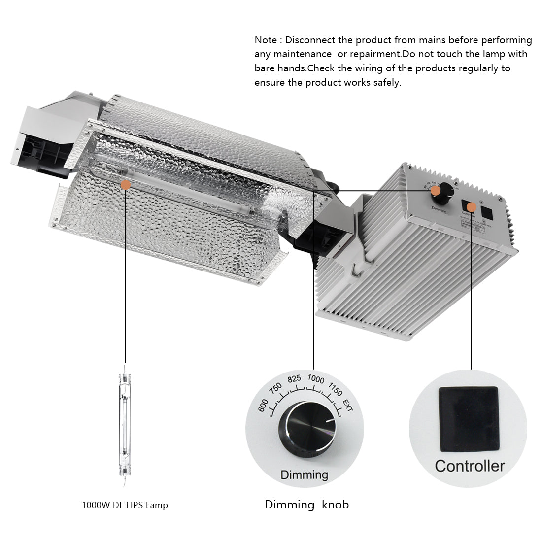 - FULL SPECTRUM LIGHT Includes a Super HPS Double Ended 1000W HPS Bulb, high PAR 2100um+ output, providing 35% more available energy than Standard HPS Lamp bulb.