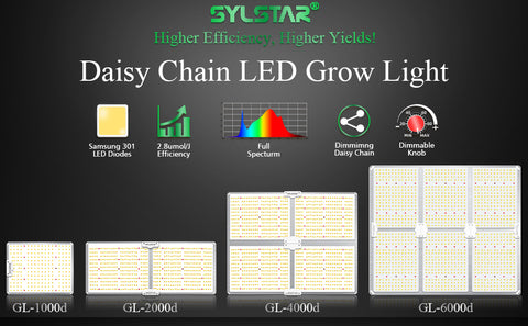 GL6000d/600W LED Grow Light with Samsung LM301&Daisy Chain Dimming, full spectrum for indoor plants