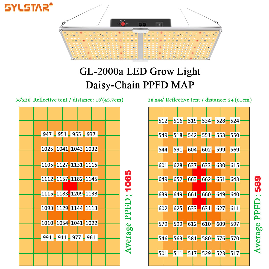 GL2000-220W LED Grow Light with Samsung LM301b& Mean Well Driver, Daisy Chain Dimming, 606pcs Leds