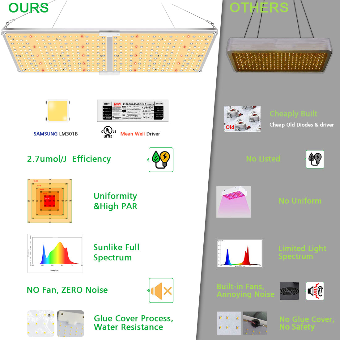 - 【ZERO NOISE&RELIABILITY】No Fan, ZERO Noise and Waterproof function. Passively cooled with a large area of solid aluminum heat sink, special protective covers for cables, waterproof LED board. High safety performance, UL listed and IP65 MEAN WELL Driver 100-277V input voltage. >50,000hrs Longer lifespan and more safety compare with other grow lights.
