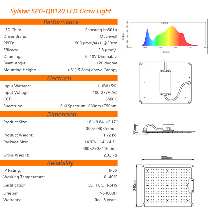 • 【ZERO NOISE&RELIABILITY】No Fan, ZERO Noise and Waterproof function. Passively cooled with a large area of solid aluminum heat sink, special protective covers for cables, waterproof LED board. High safety performance, UL listed and IP65 MEAN WELL Driver 100-277V input voltage. >50,000hrs Longer lifespan and more safety compare with other grow lights.