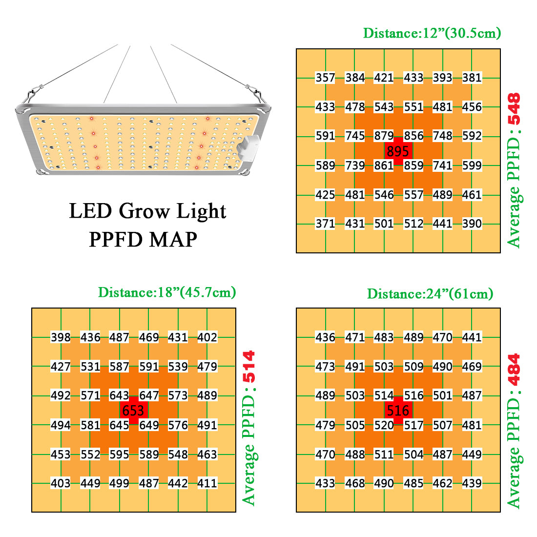 • 【HIGH EFFICIENCY】The high Energy Efficiency is up to 2.8 μmol/J, only consume 110W, light output PAR/PPFD value is 889umol/m²/s @ 12inch. Newest SMD LED panel grow light is designed to replace 315Watt CMH or 600Watt HPS, save more than 60% energy. Veg footprint is 3 x 3 ft, Flowering footprint is 2 x 2 ft.